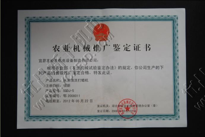農(nóng)業(yè)機(jī)械推廣鑒定證書