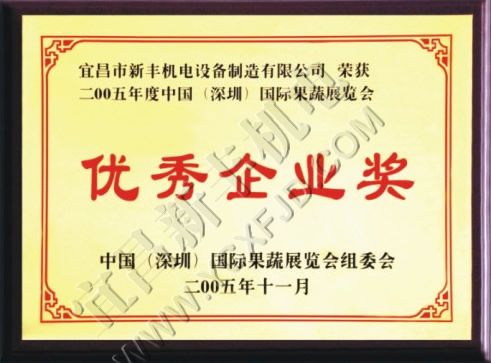 國(guó)際果蔬博覽會(huì)優(yōu)秀企業(yè)獎(jiǎng)