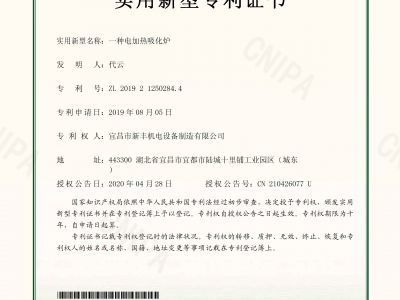 實用新型專利證書《一種電加熱吸化爐》