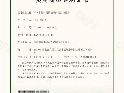 實用新型專利證書《一種多級料果篩選滾筒線驅(qū)動裝置》