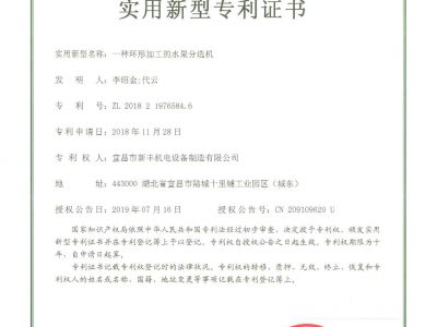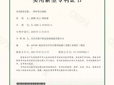 實用新型專利證書《一種環(huán)形分級機(jī)》