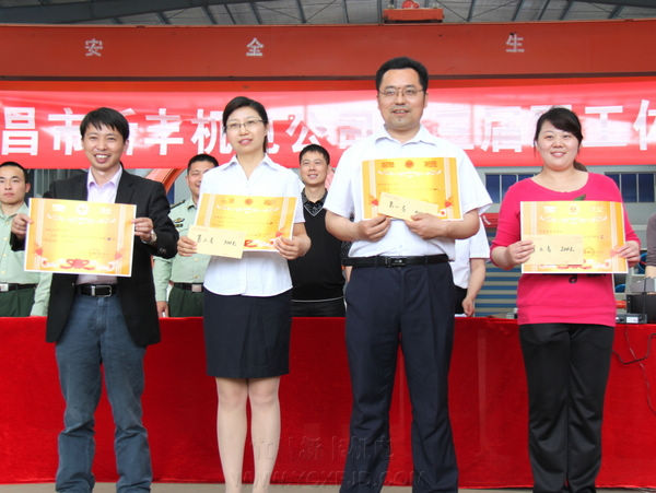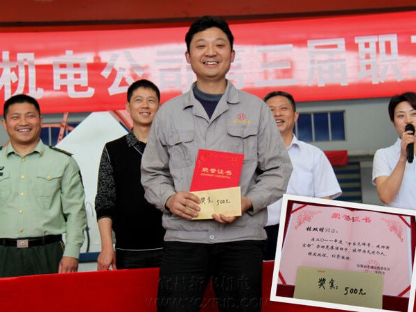 最后,張總為獲得宜都市勞動競賽“先進(jìn)個人”稱號的張雙明同志頒獎。