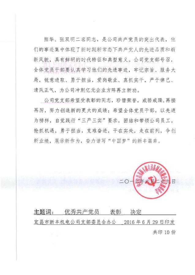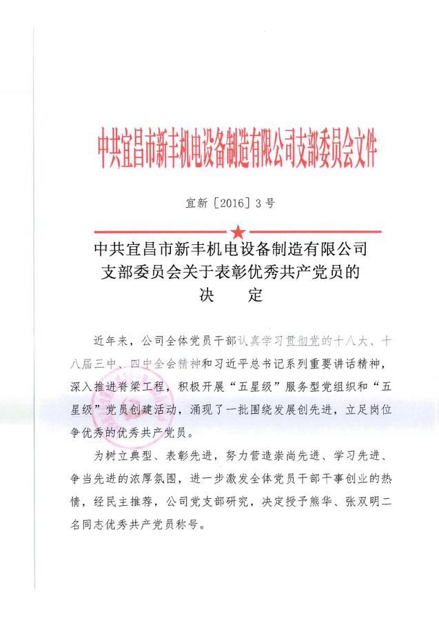關(guān)于表彰優(yōu)秀共產(chǎn)黨員的決定